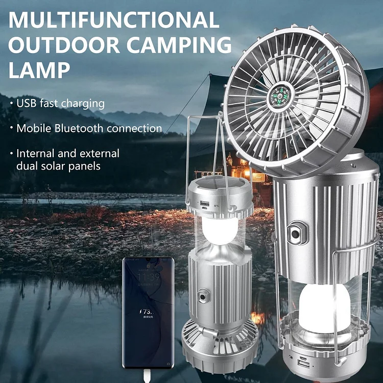 ✨5-in-1 LED Camping Lantern with Fan – Rechargeable, Portable, Hanging Light for Tent & Outdoor Use